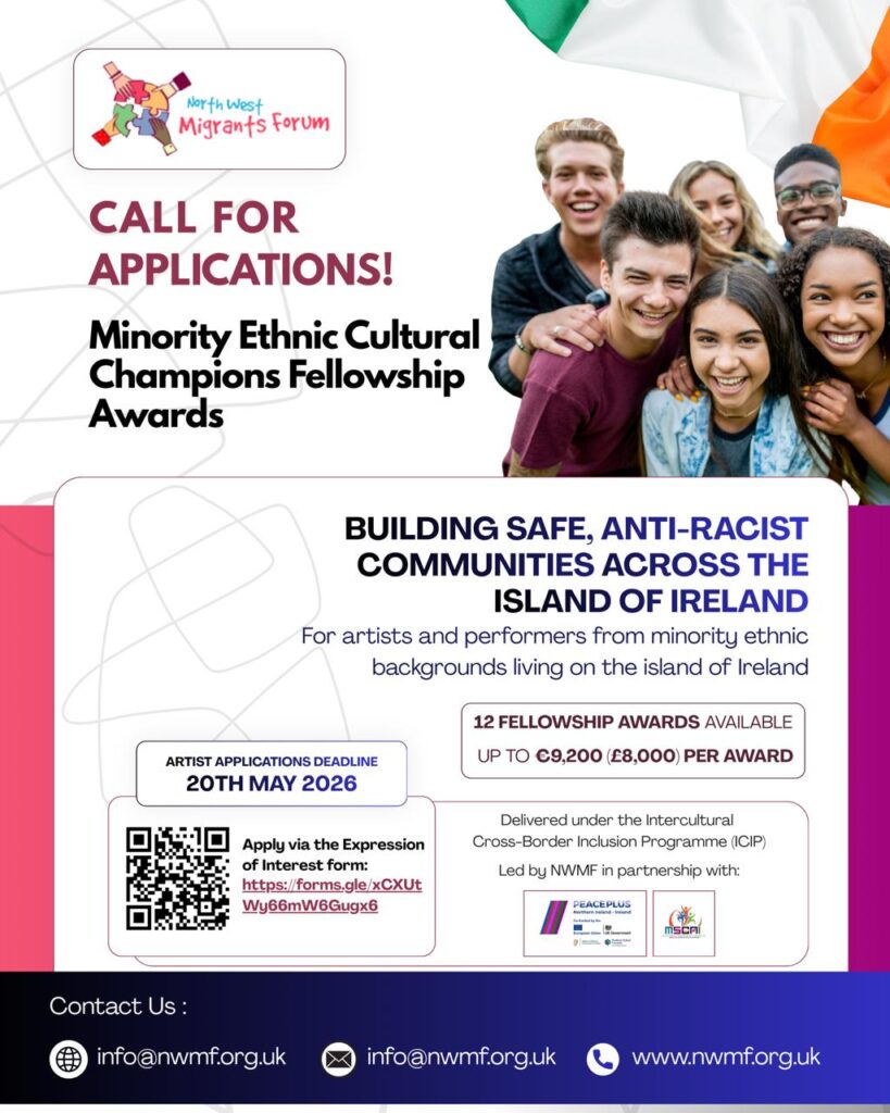 ICIP aims to deliver community-led peacebuilding, inclusion and integration across the island of Ireland. Funded by the PEACEPLUS Programme, ICIP is led by the North West Migrants Forum (NWMF) in partnership with Donegal Intercultural Platform (DIP), Irish Network Against Racism INAR), Multi-Ethnic Sports and Cultures NI (MSCNI) and Rural Community Network (RCN).